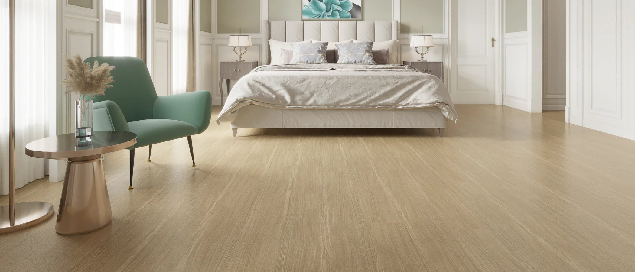 L&C Stone Polymer Composite Flooring is expertly crafted with advanced materials. Our flooring features a robust composition of Stone Polymer Composite. Coated with a 0.5mm transparent top layer, it is designed to resist scratches, stains, fading, and more. The inner core comprises compressed plastic and limestone powder, ensuring the planks are exceptionally hard and rigid for enduring durability. The flooring is equipped with a pre-attached 1.5 mm foam underpad that provides moisture protection from the subfloor and reduces sound/noise. With an overall thickness of 6.5 mm and synchronous alignment for straightforward installation, our Stone Polymer Composite flooring is a premium choice. Its versatility allows installation on any level and almost any existing solid subfloor, catering to various traffic levels, making it an excellent option for both residential and commercial applications.